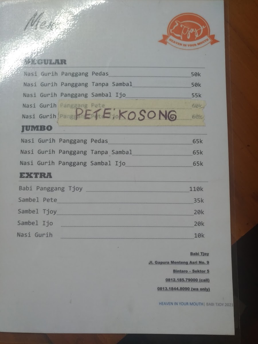 Whether you're a pork aficionado or just curious, Babi Tjoy invites you to indulge in its flavorful offerings.